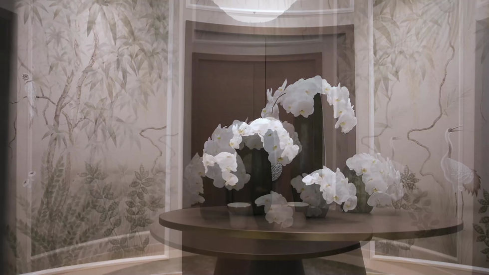 The Coral Villa masterfully balances classic and contemporary design elements, creating a timeless aesthetic elevated by the bold vibrancy of its color palette. Traditional architectural details, such as ornate moldings and refined finishes, are paired with sleek, modern furnishings to achieve a perfect contrast. The vivid hues of coral and green serve as the unifying thread, bringing warmth and energy to the interiors while adding a playful yet sophisticated touch to the overall design. This dynamic interplay of styles and colors results in a space that feels both elegant and refreshingly unique.